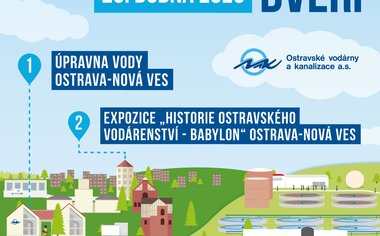 Zveme vás na tradiční Den otevřených dveří. V sobotu 25. dubna otevřeme brány Úpravny vody v Ostravě - Nové Vsi, expozici Babylon a ÚČOV v Ostravě-Přívoze. Těšit se můžete na komentované prohlídky, technologické ukázky i setkání s odborníky, kteří denně zajišťují dodávky kvalitní pitné vody pro Ostravu.